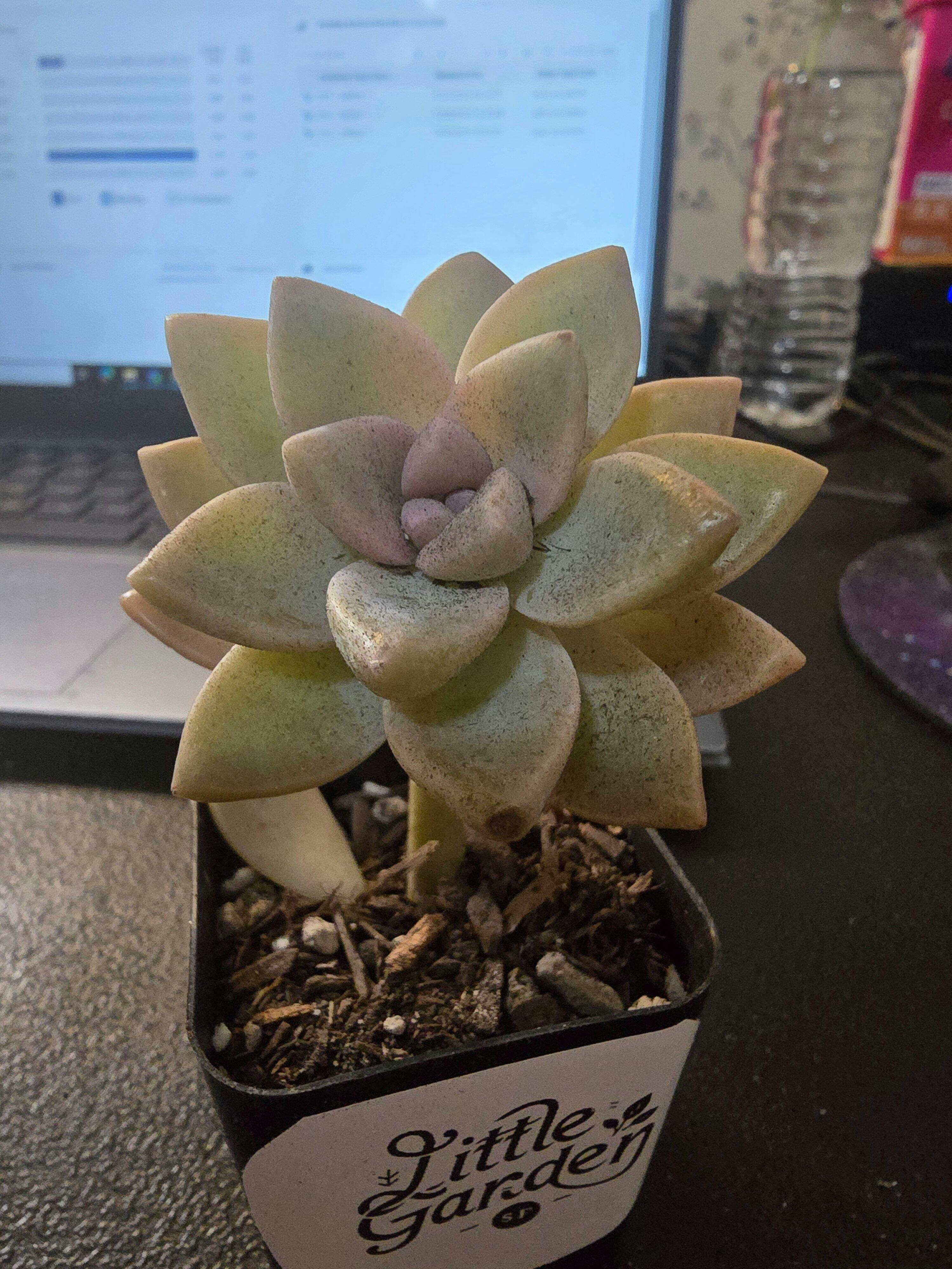 Graptopetalum paraguayense is a species of succulent plant in the jade plant family, Crassulaceae, that is native to Tamaulipas, Mexico. Common names include mother-of-pearl-plant and ghost plant. This is not to be confused with Monotropa uniflora which is also referred to as the “Ghost plant”.